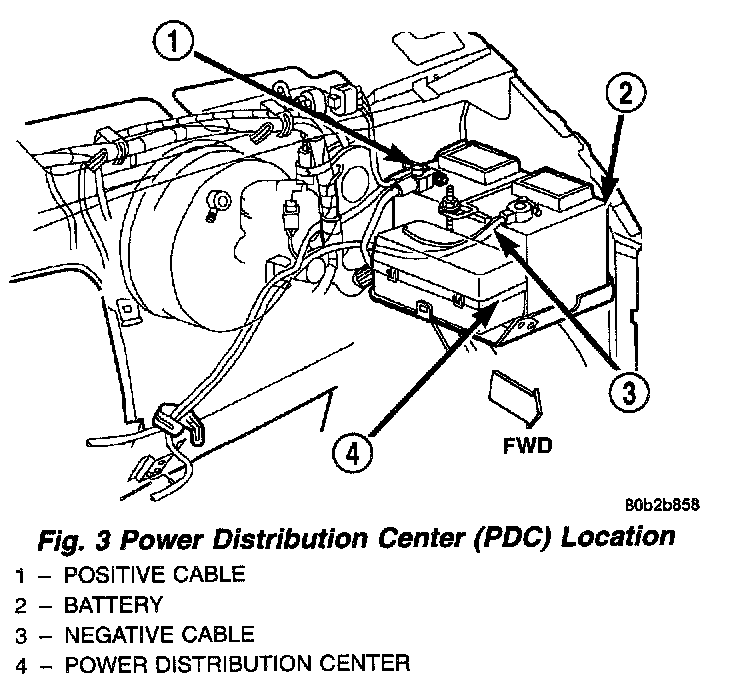 The following operation/tests apply only to the Automatic Shutdown (ASD) and fuel pump relays.Fig.3 Power Distribution Center (PDC) Location: