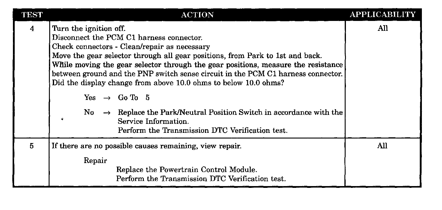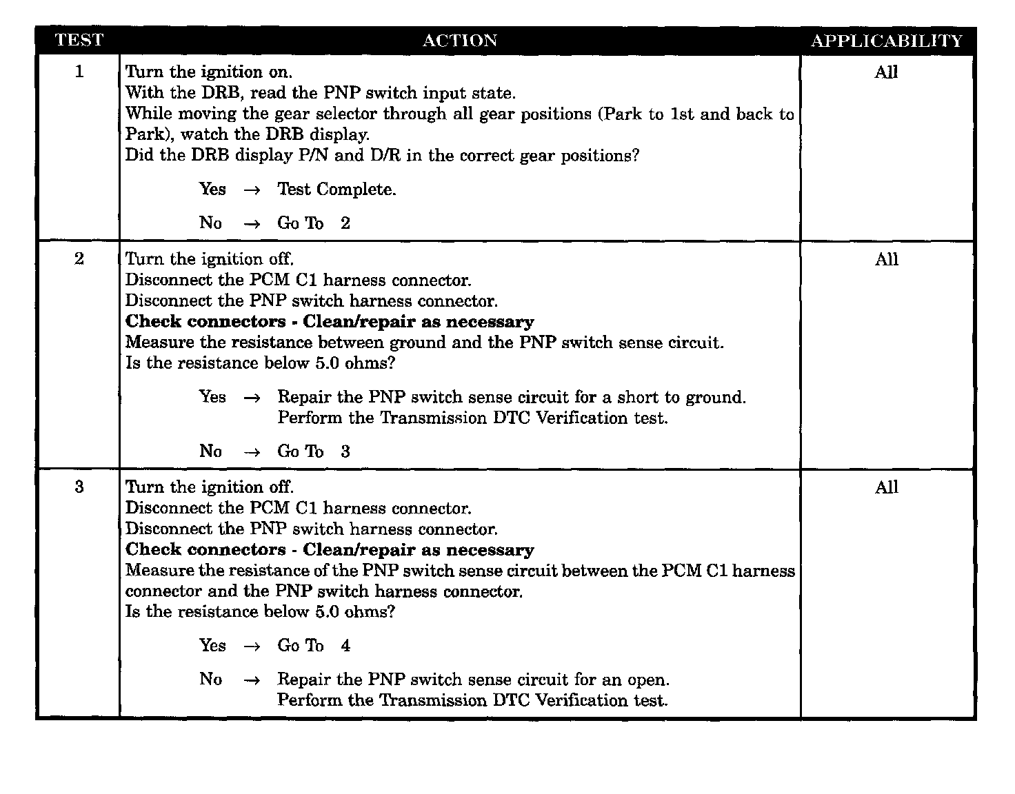 CHECKING PARK/NEUTRAL SWITCH OPERATION