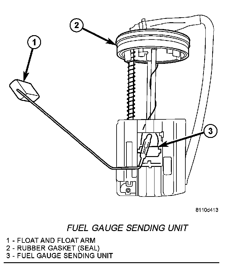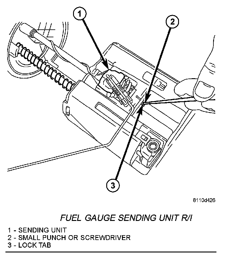 3. To remove sending unit from tank module, lift on plastic locking tab while sliding sending unit on its tracks.