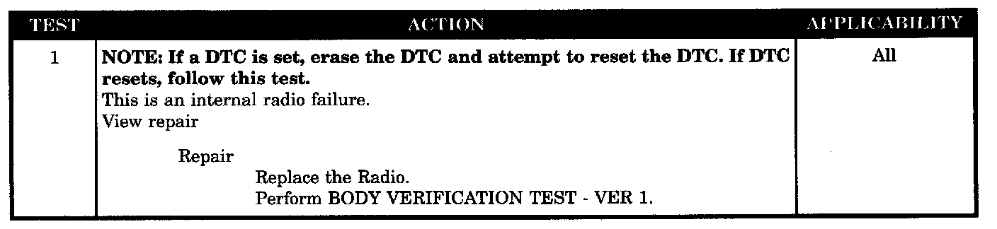 This symptom is diagnosed using the test CASSETTE PLAYER INOP