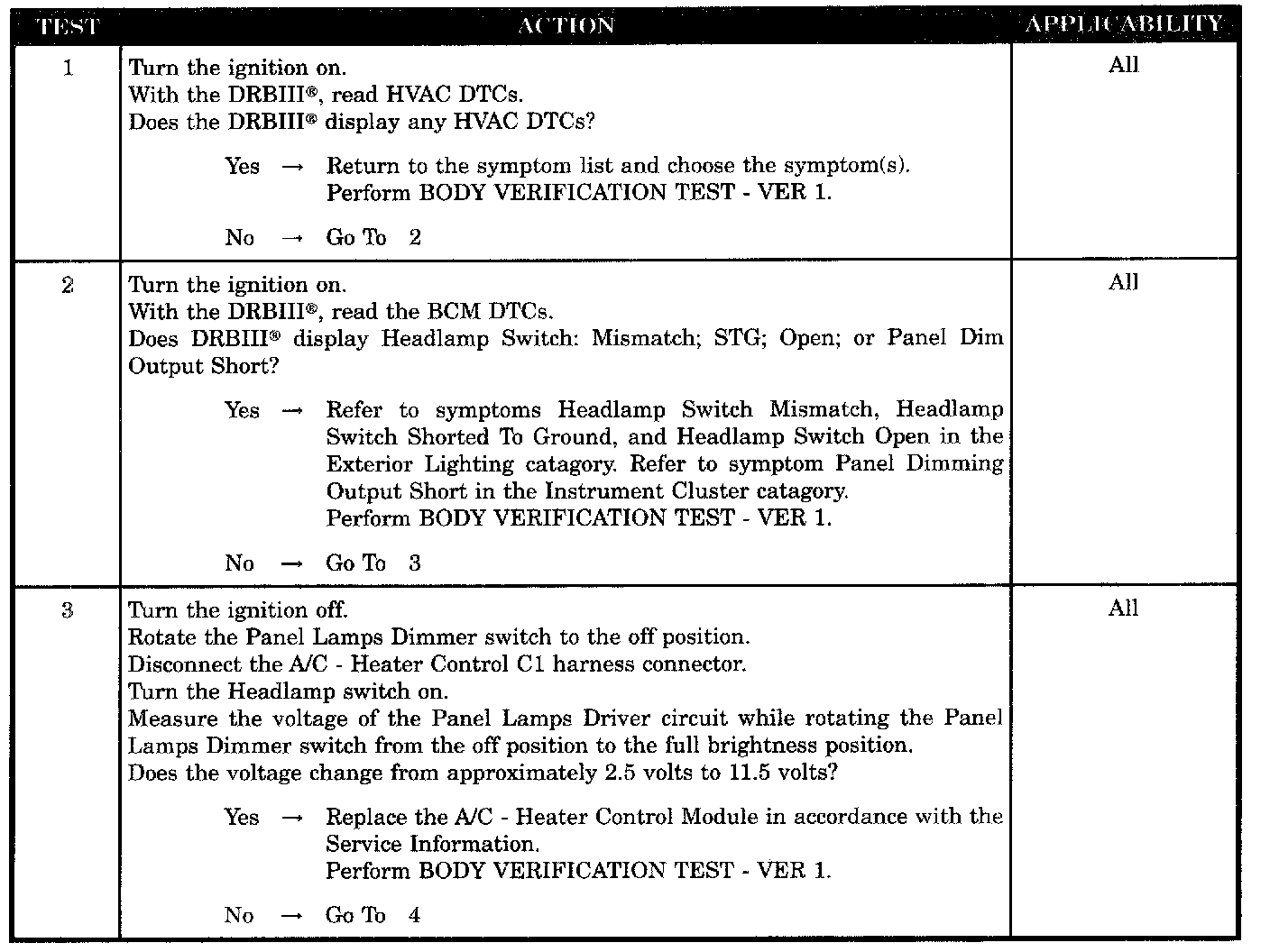 FRONT A/C - HEATER CONTROL ILLUMINATION INOPERATIVE - MTC