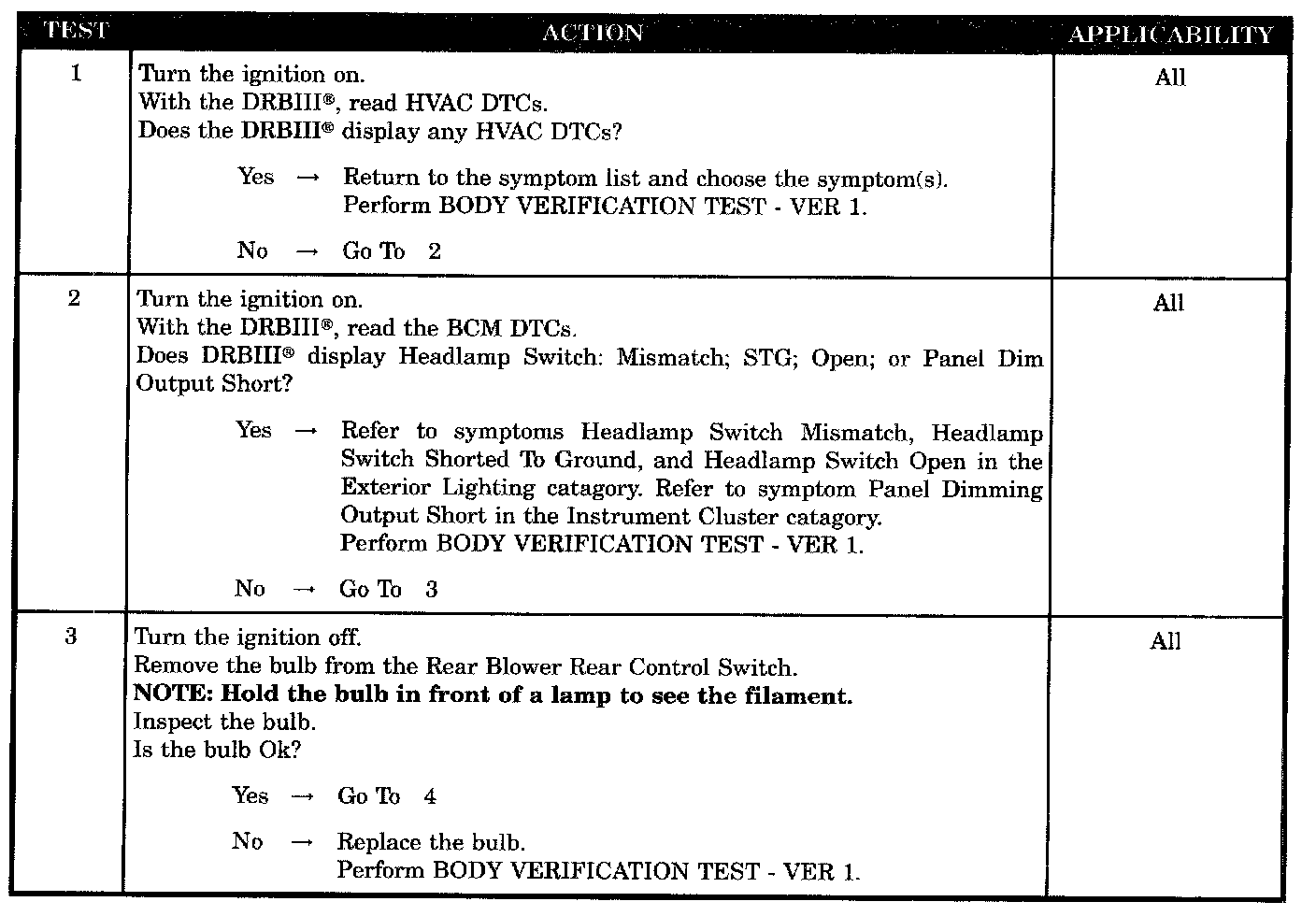 Rear A/C - Heater Control Illumination Inoperative -MTC