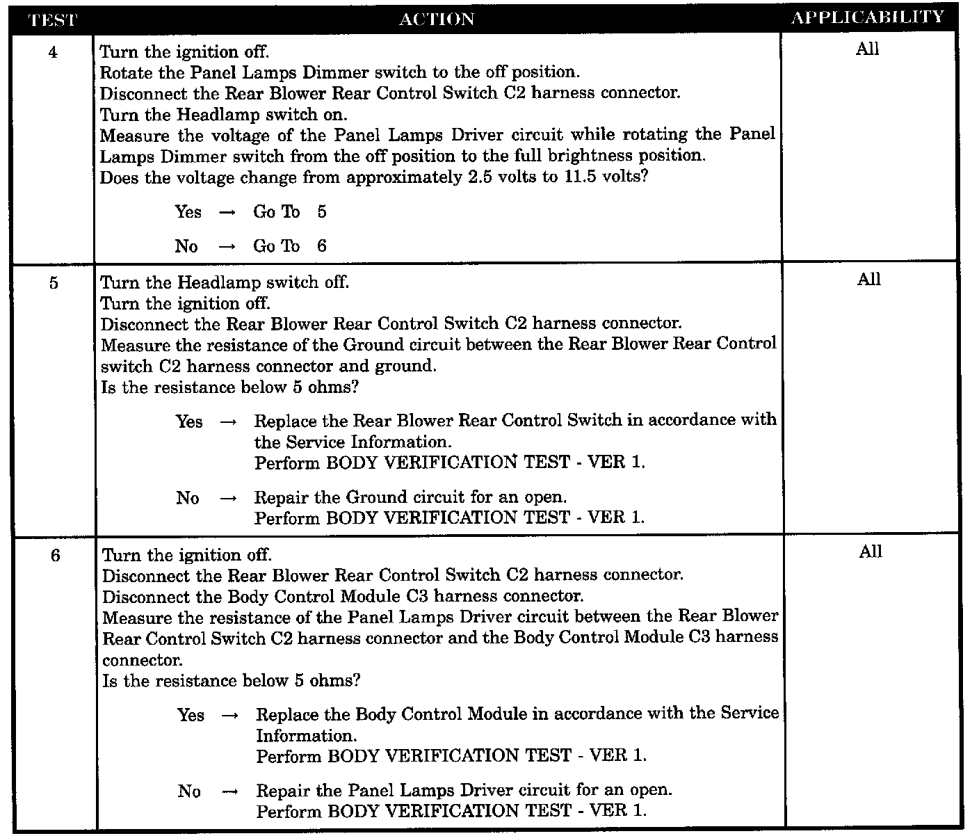 REAR A/C - HEATER CONTROL ILLUMINATION INOPERATIVE - MTC