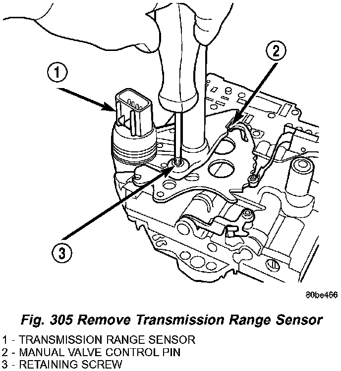 2. Remove transmission range sensor retaining screw and remove sensor from valve body (Fig. 305).