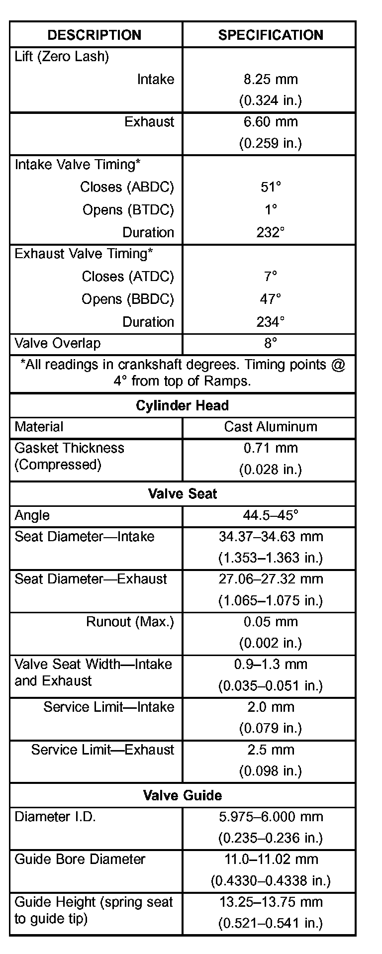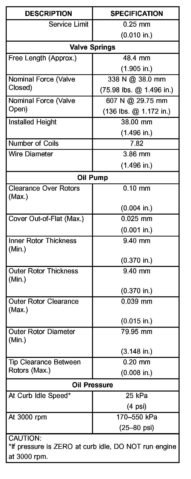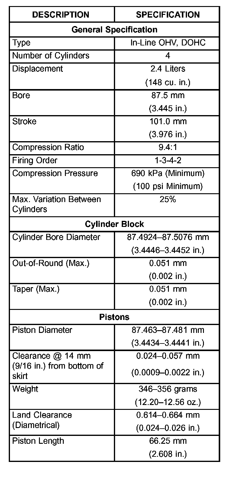 Engine Specifications