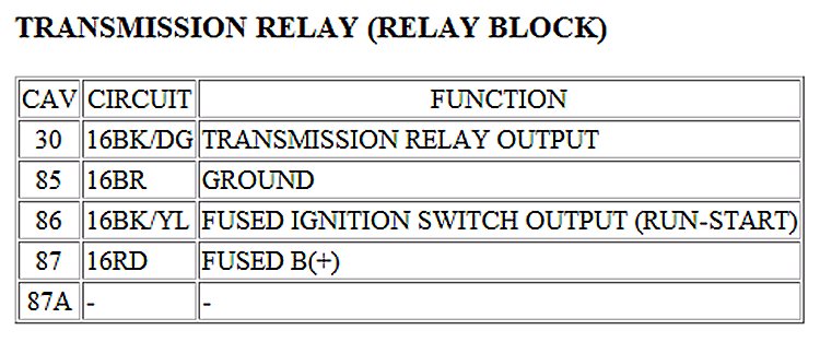 Transmission Control System Relay, A/T
