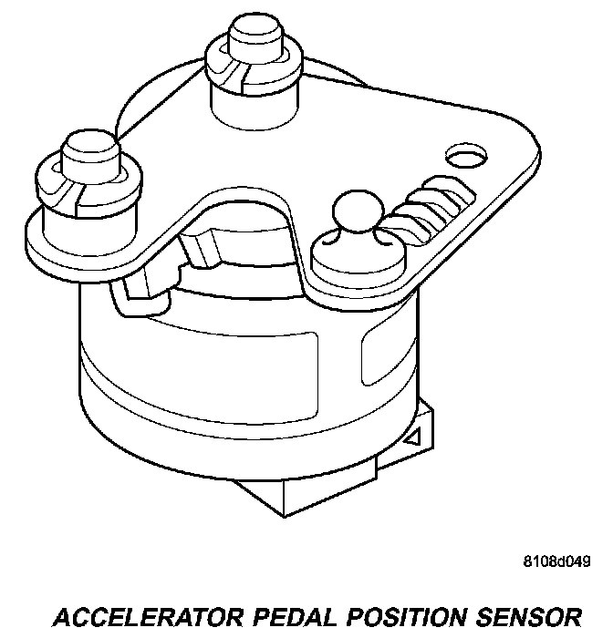 The accelerator pedal position sensor is located on the accelerator pedal assembly. The driver supplies the torque requirements for the engine by operating the accelerator pedal in accordance with the desired speed or acceleration. The pedal sensor converts the mechanical operation of the pedal into an electrical signal and sends the information to the ECM. The ECM adjusts the quantity of the fuel that is injected into the engine.