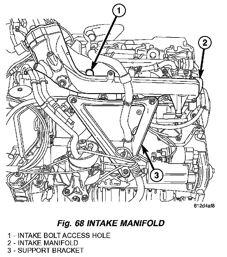 Install the lower intake manifold support bracket. Tighten bolts to 20 Nm (177 inch lbs.) (Fig. 68).