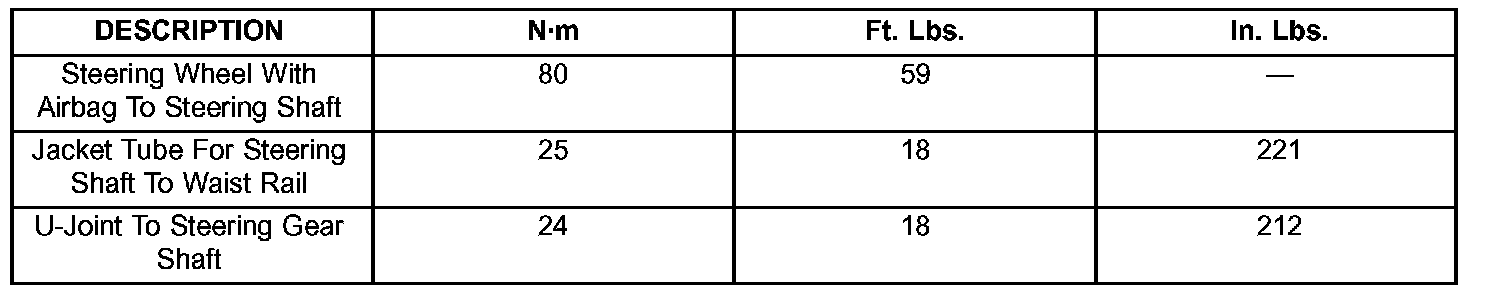 Torque Specifications: