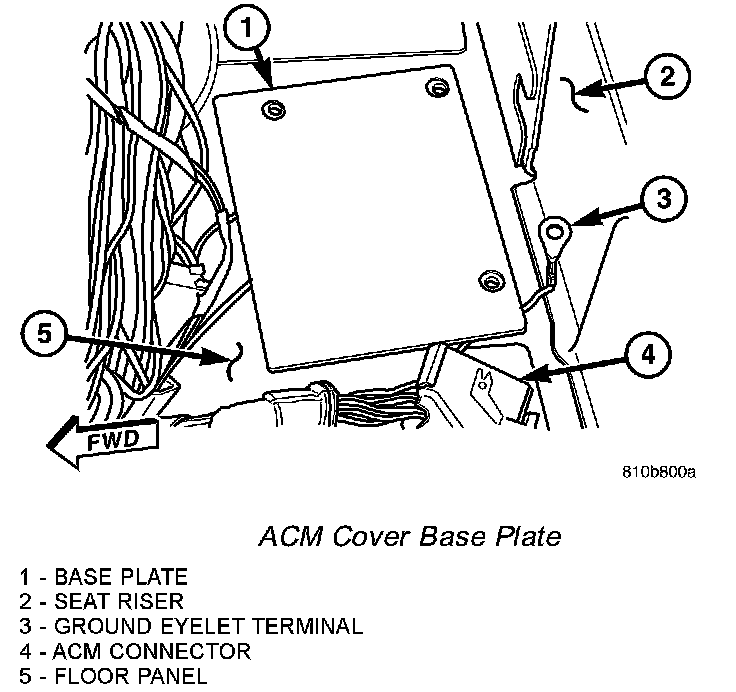 2. Carefully position the ACM cover base plate onto the mounting bracket that is welded onto the floor panel under the driver side front seat.