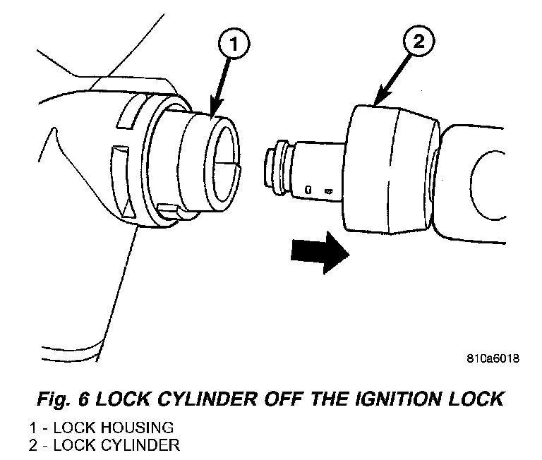 7. Remove cap together with the lock cylinder off the ignition lock (Fig. 6).