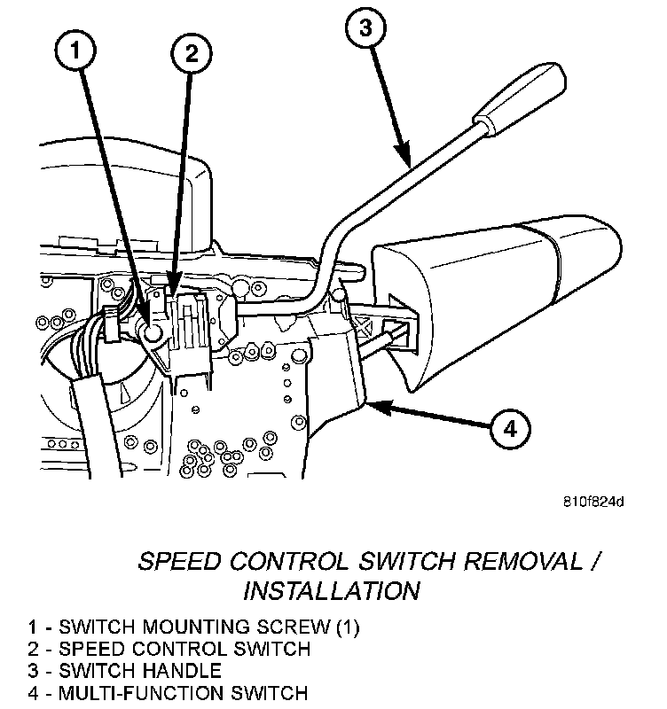 The speed control switch is mounted to the back of the multi-function switch. The multi-function switch must be removed first to gain access to the speed control switch mounting screw.