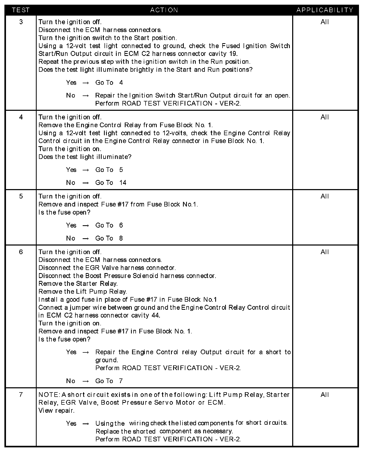 - Engine control relay output CKT shorted to ground fuse #17