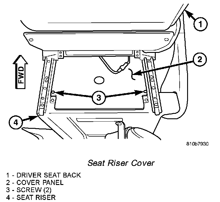 3. Remove the two screws that secure the cover panel to the top of the seat riser under the driver side front seat.
