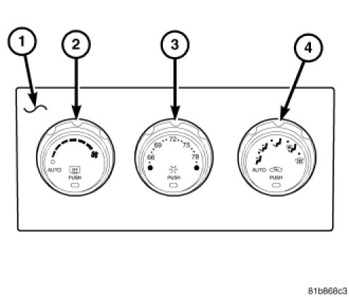 - a rotary control for manual and automatic blower motor speed selection and for turning the heating-A/C system on and off (2). This control also contains a push button function for turning the rear window defogger system on and off. The control contains an indicator lamp that illuminates when the rear window defogger system is in operation.