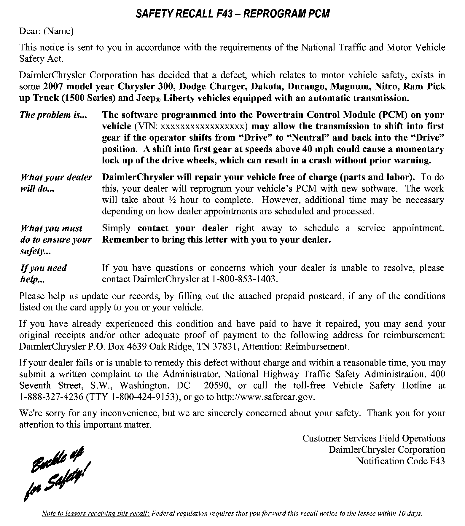 Recall - PCM Update for A/T Shift Logic