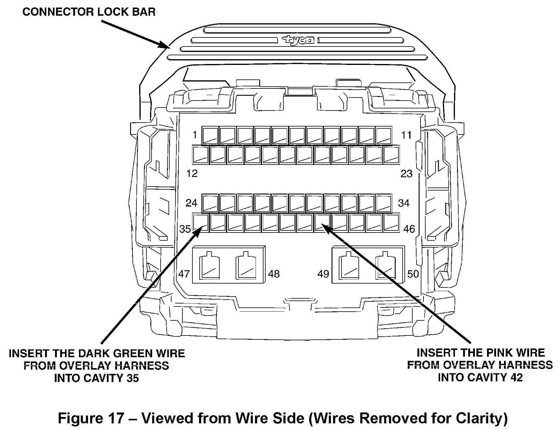 i. Carefully insert the pink wire from the overlay wiring harness into cavity 42 (Figure 17).