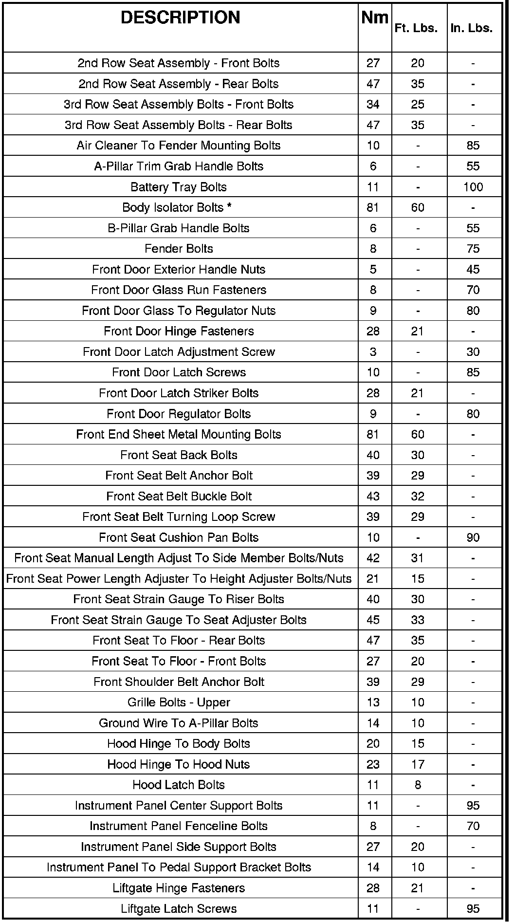 CAUTION: * Whenever a body isolator bolt requires servicing or tightening, it is necessary to remove the bolt and install new thread locker compound to the threads.
