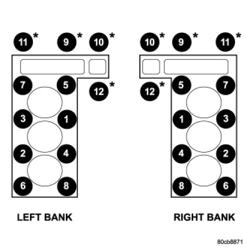 - Install the intake manifold retaining bolts and tighten in sequence shown to 12 Nm (105 in. lbs.).