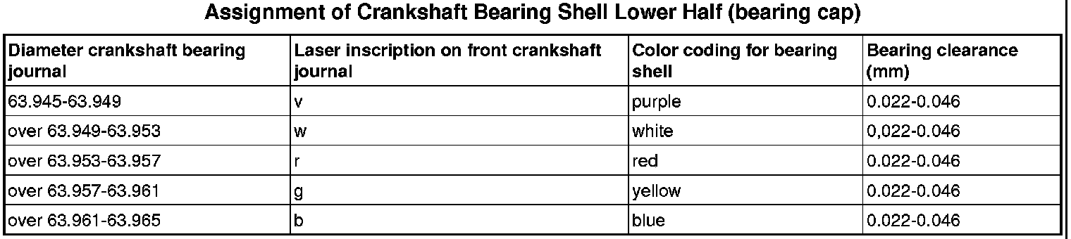 CRANKSHAFT MAIN BEARING SIZE CODES