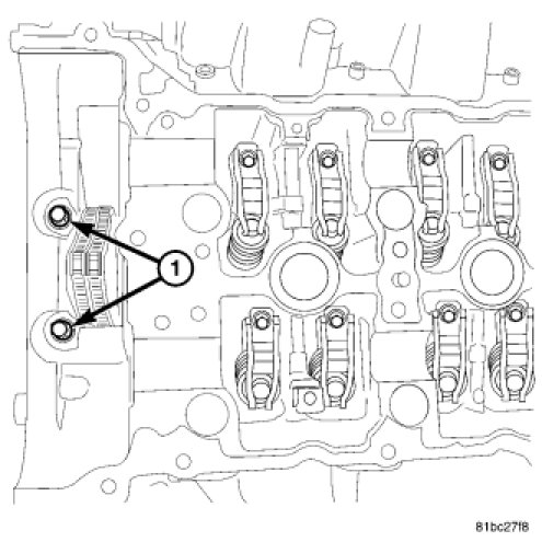 1. Install the cylinder head to timing case bolts and tighten to 25 Nm (18 ft. lbs.) and then an additional 90 degrees.