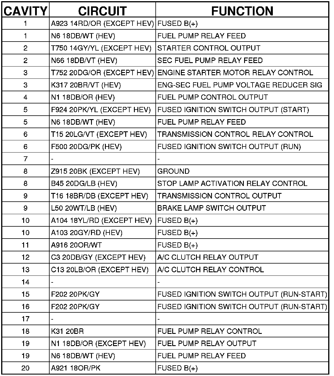 Power Distribution Center C1 (Hard Wired) 20 Way