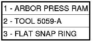 11. Using Compressor 5059-A (6) with Installer 5067 (5) and an arbor press (1), install the UD spring retainer and snap ring (3).