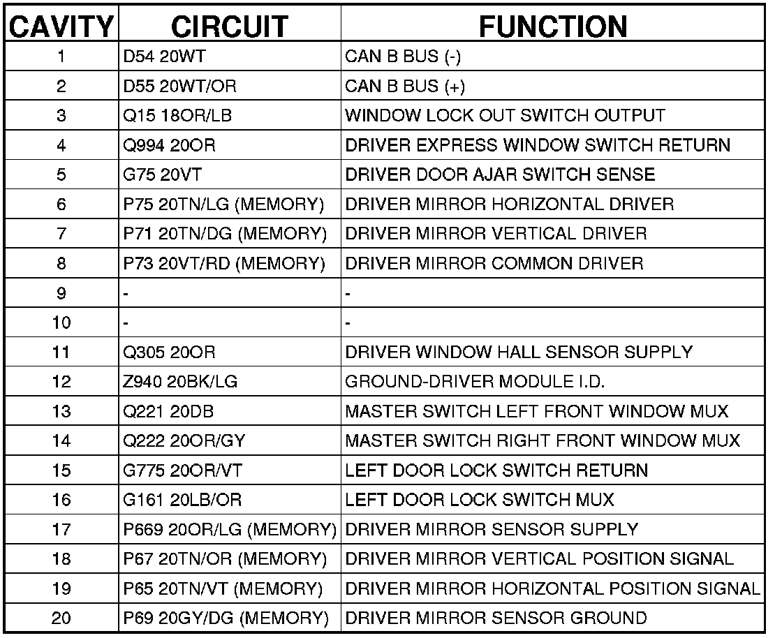 Driver Door Module C2 (Front Driver Door) 20 Way