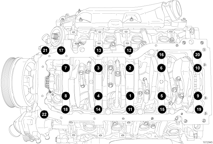 Tighten the bolts 1 through 10 to 27 Nm (20 ft. lbs.) again.