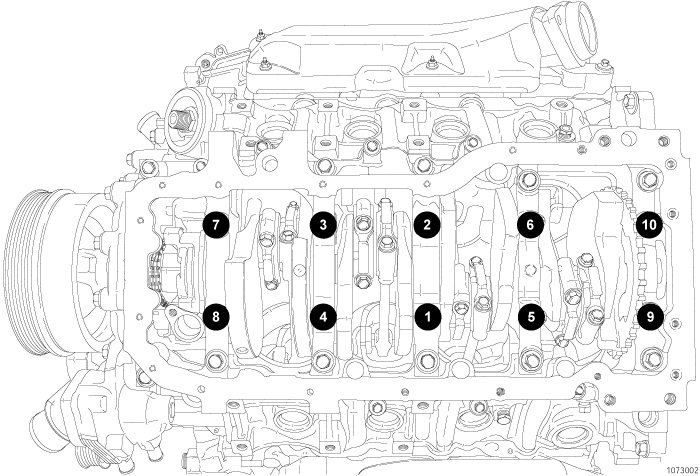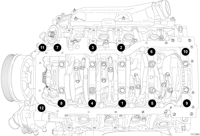 Tighten the bolts 1 through10 to 27 Nm (20 ft. lbs.)
