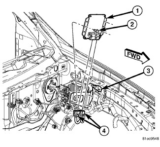 4. Disconnect the two headlamp and dash wire harness connectors (4) from the HGM connector receptacles located on the forward facing side of the module.