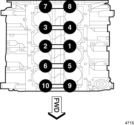 Using the sequence shown, rotate the cylinder head bolts 1 through 10 90°.
