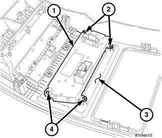 2. Install the screws (2 and 4) that secure the A/C-heater control to the center bezel. Tighten the screws to 2 Nm (17 in. lbs.).