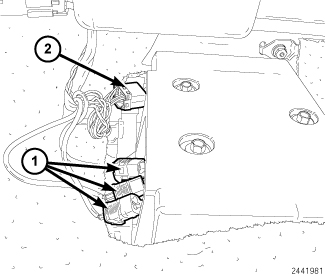 3. Disconnect the three antenna connectors (1) and the electrical connector (2).
