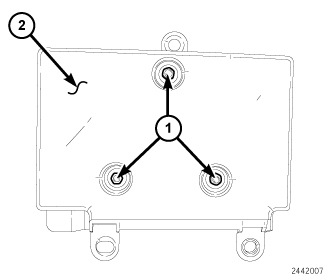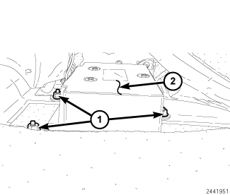 4. Remove the three retainers (1) securing the video module housing (2) to the floor, remove video housing and module from vehicle.