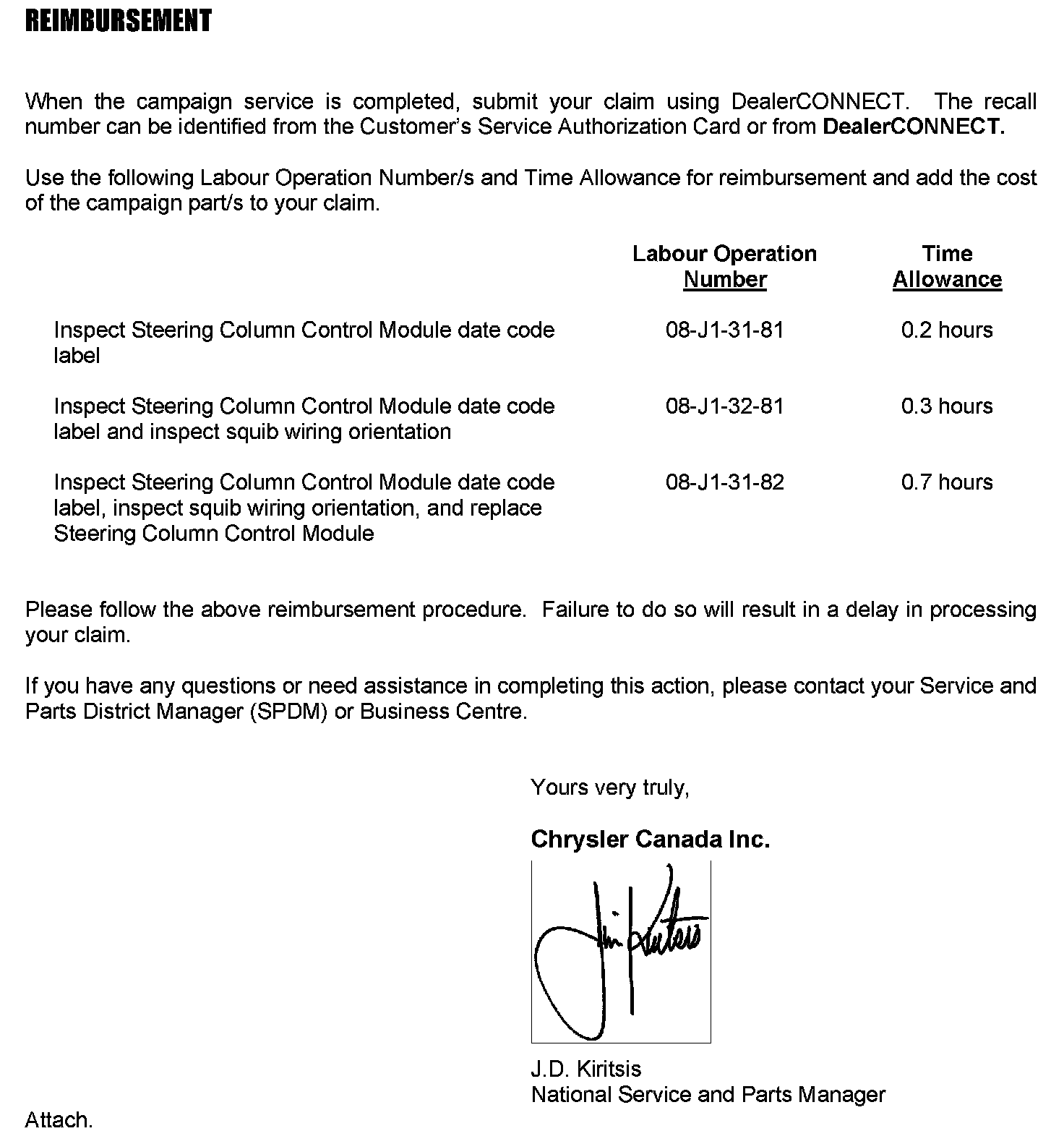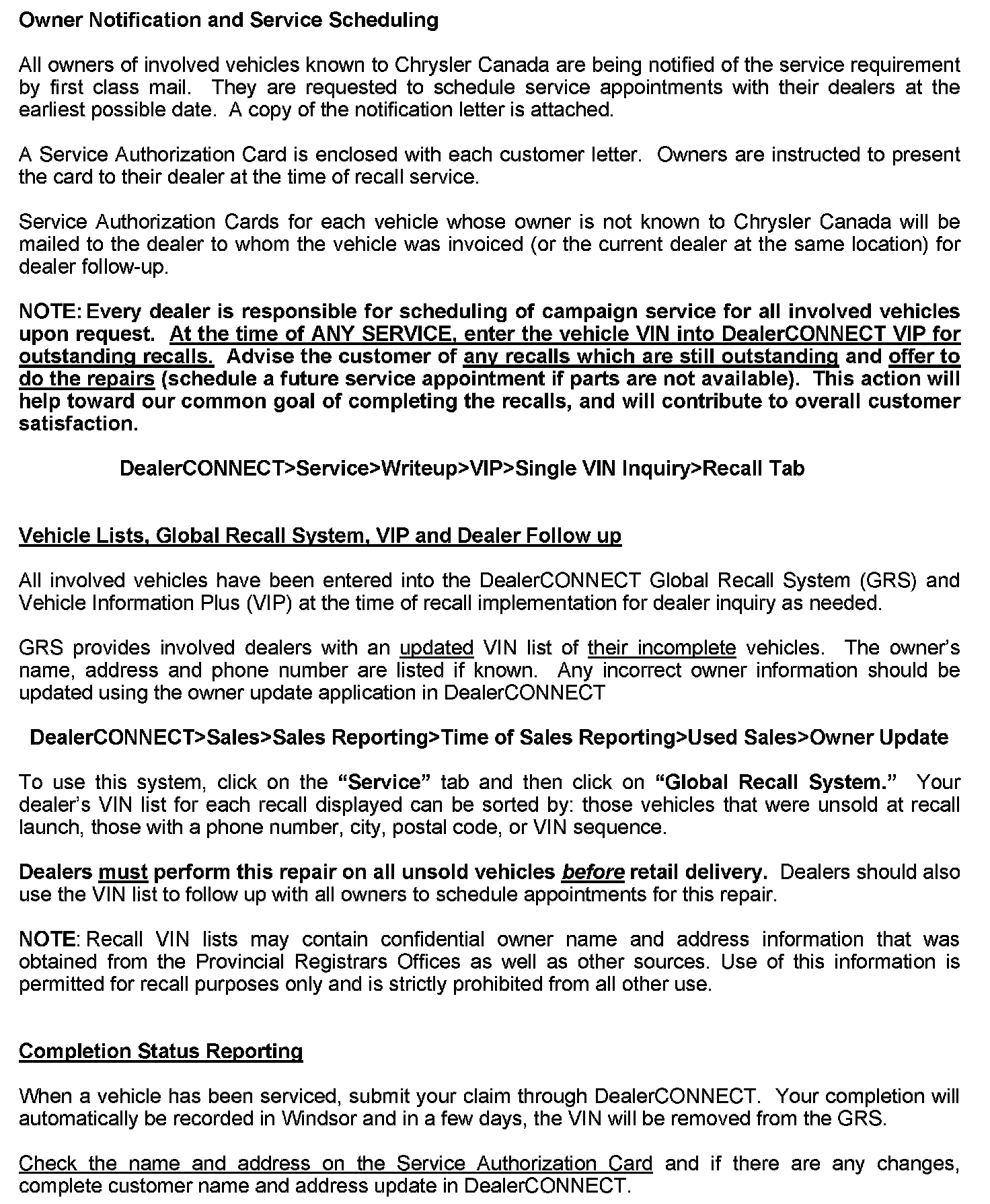 This Canadian Recall Notification can also be found in DealerCONNECT - See below: