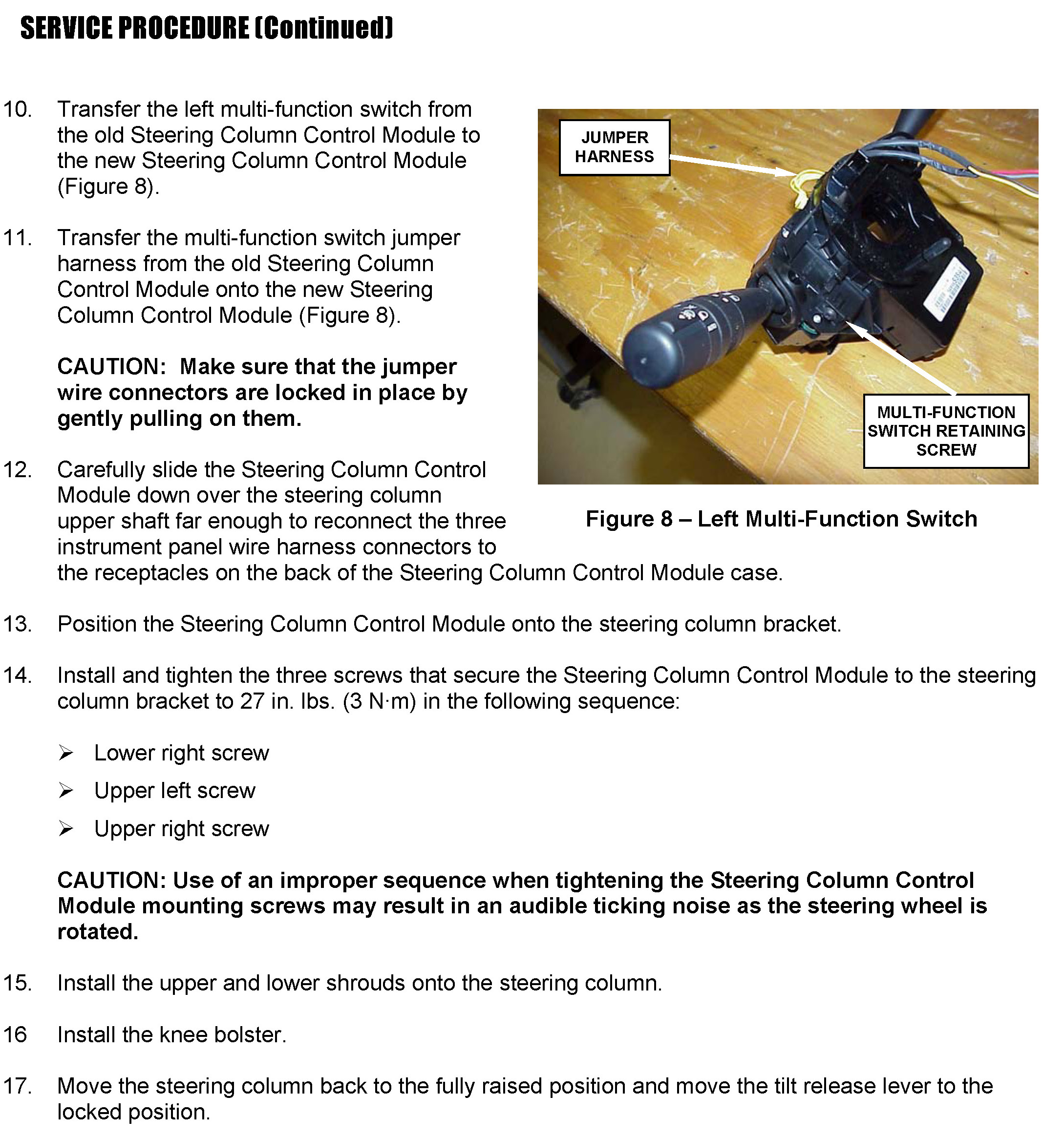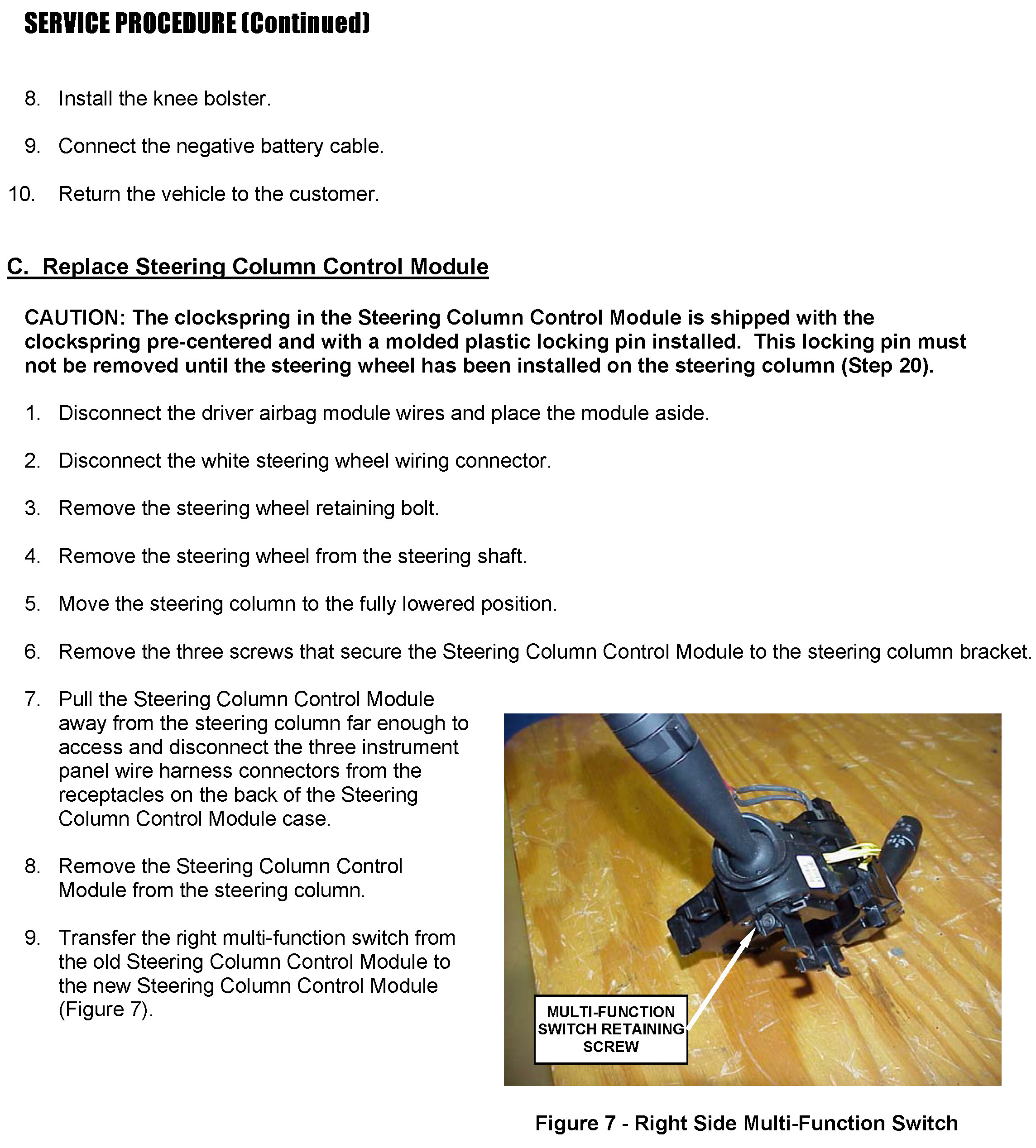 SAFETY RECALL J13 STEERING COLUMN CONTROL MODULE