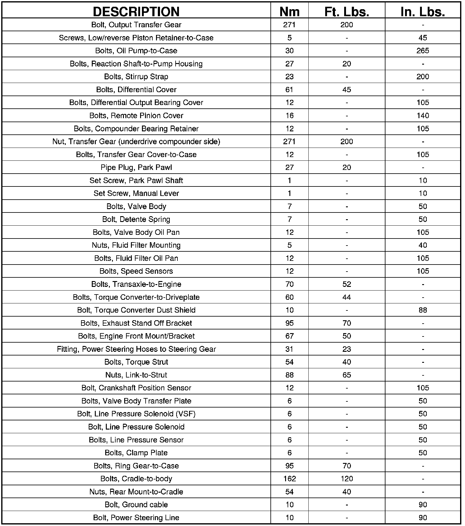 TORQUE SPECIFICATIONS