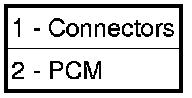 2. Unlock and disconnect the 2 electrical connectors (1) at the PCM (2).