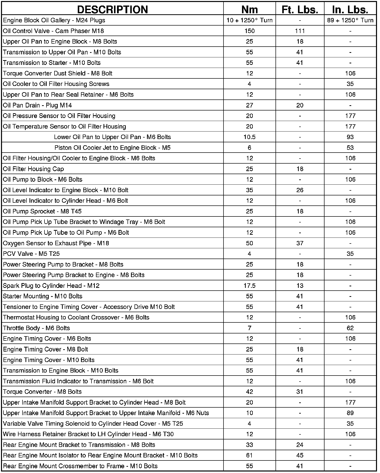 Engine Torque Specifications