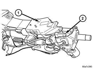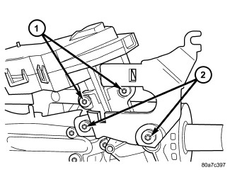 8. For columns without tilt remove the bracket (2) to gain access to the ignition switch mounting screws (1).