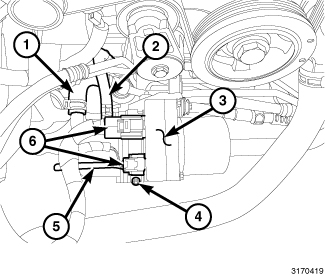NOTE: There is no internal service of the Electro-Hydraulic Power Steering (EHPS) module. The EHPS module is integral to the EHPS pump (3). Replace the EHPS module as an assembly, including the brackets, and EHPS pump.