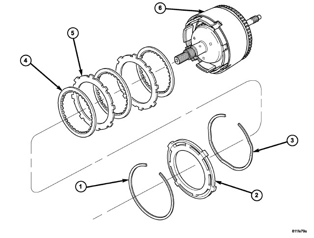 30. Take average of four measurements and compare with OD clutch pack clearance specification. The overdrive (OD) clutch pack clearance is 1.07-3.25 mm (0.042-0.128 in.).