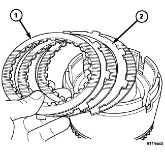 31. Install reverse clutch pack (two frictions/one steel) (1,2).
