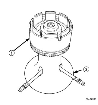 21. Install input clutch assembly (1) to the Input Clutch Pressure Fixture (2)(Figure 21).