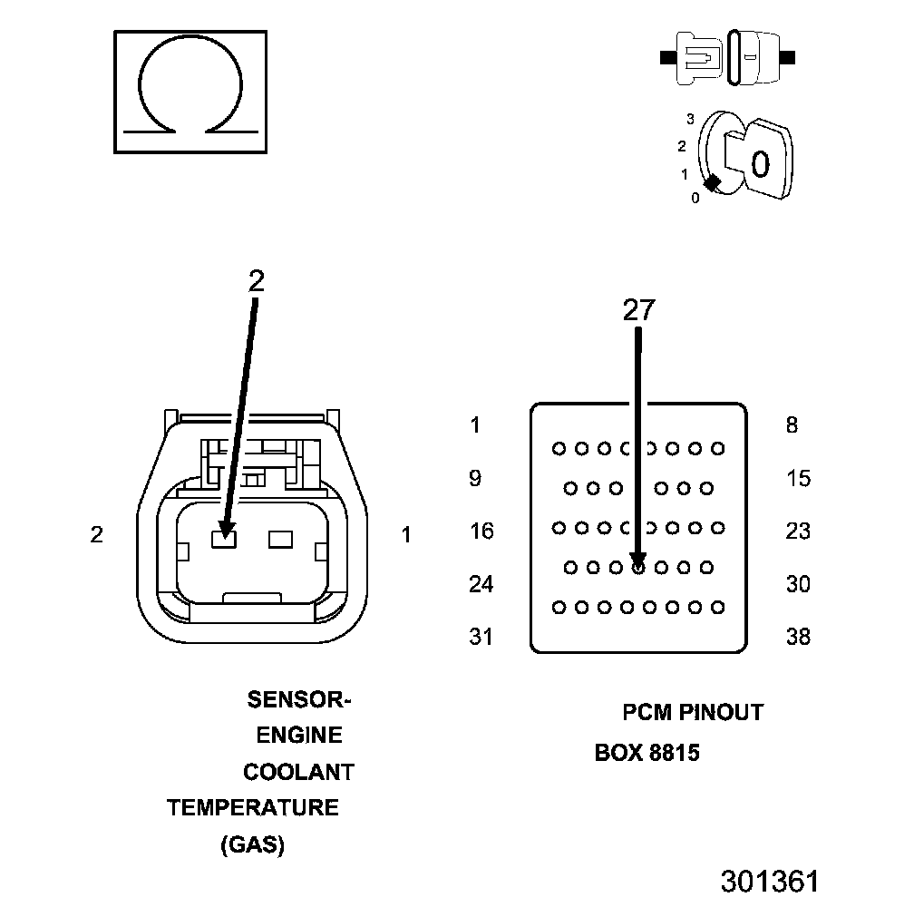1. Using the wiring diagram/schematic as a guide, inspect the wiring and connectors between the Engine Coolant Temperature sensor(s) and the PCM.
