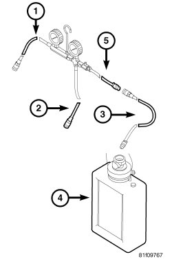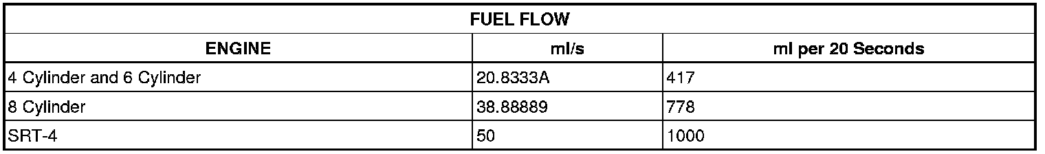 3. Read the Fuel Pressure Gauge (3) and record the reading. Non SRT-4 fuel pressure specification is 407 kPa +/- 34 kPa (59 psi +/- 5 psi). SRT-4 fuel pressure specification is 552 kPa +/- 34 kPa (80 psi +/- 5 psi).