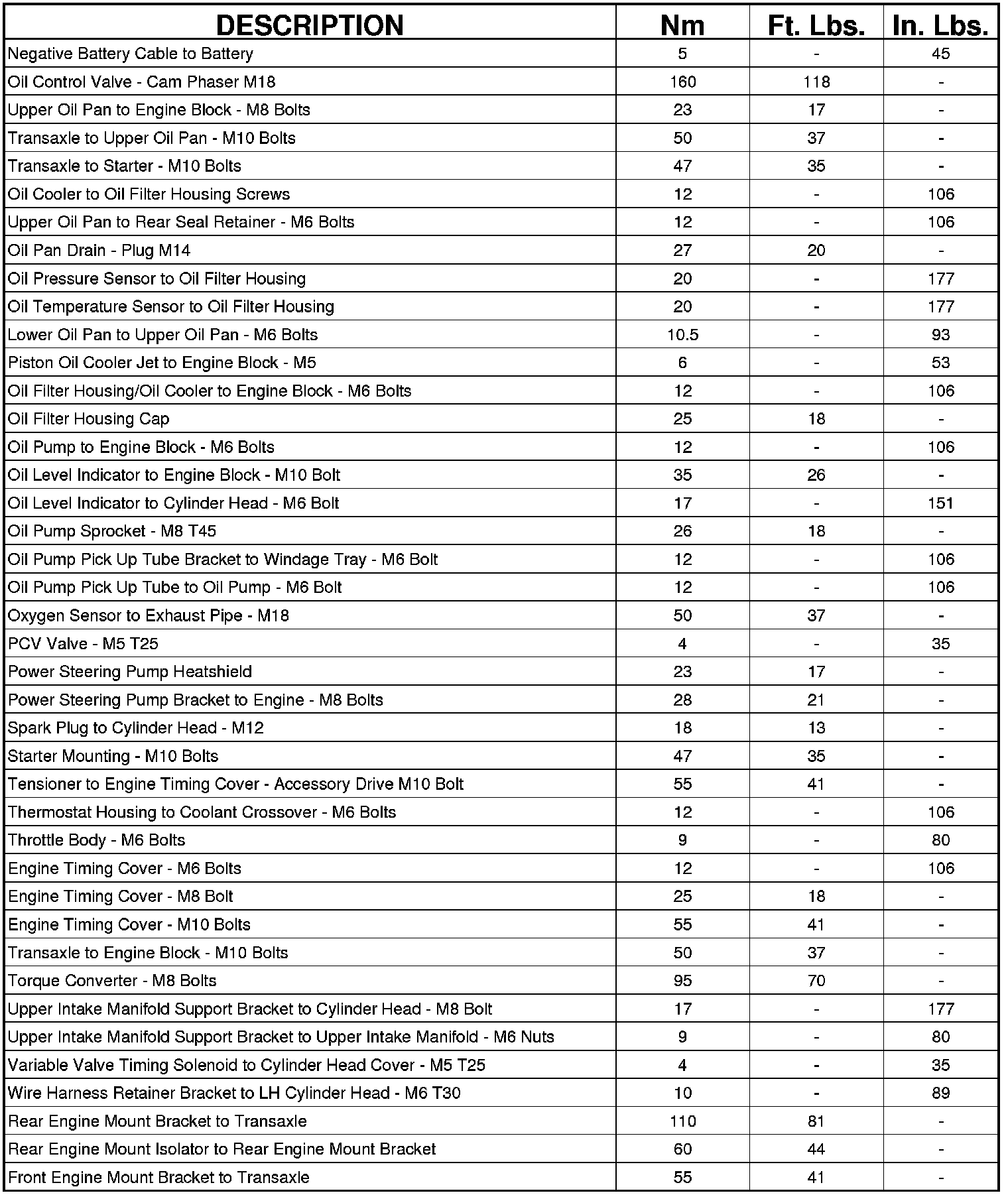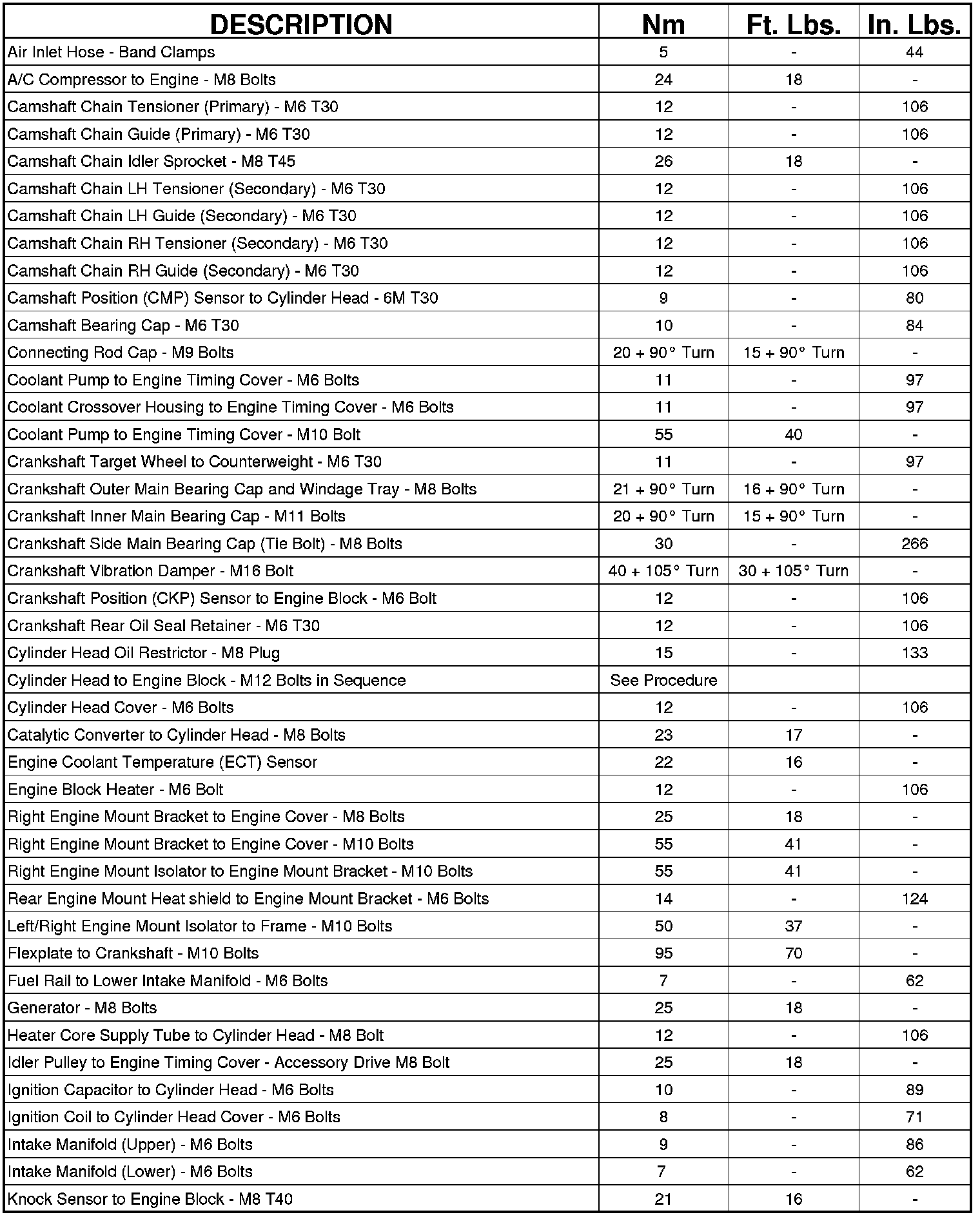 Engine Torque Specifications