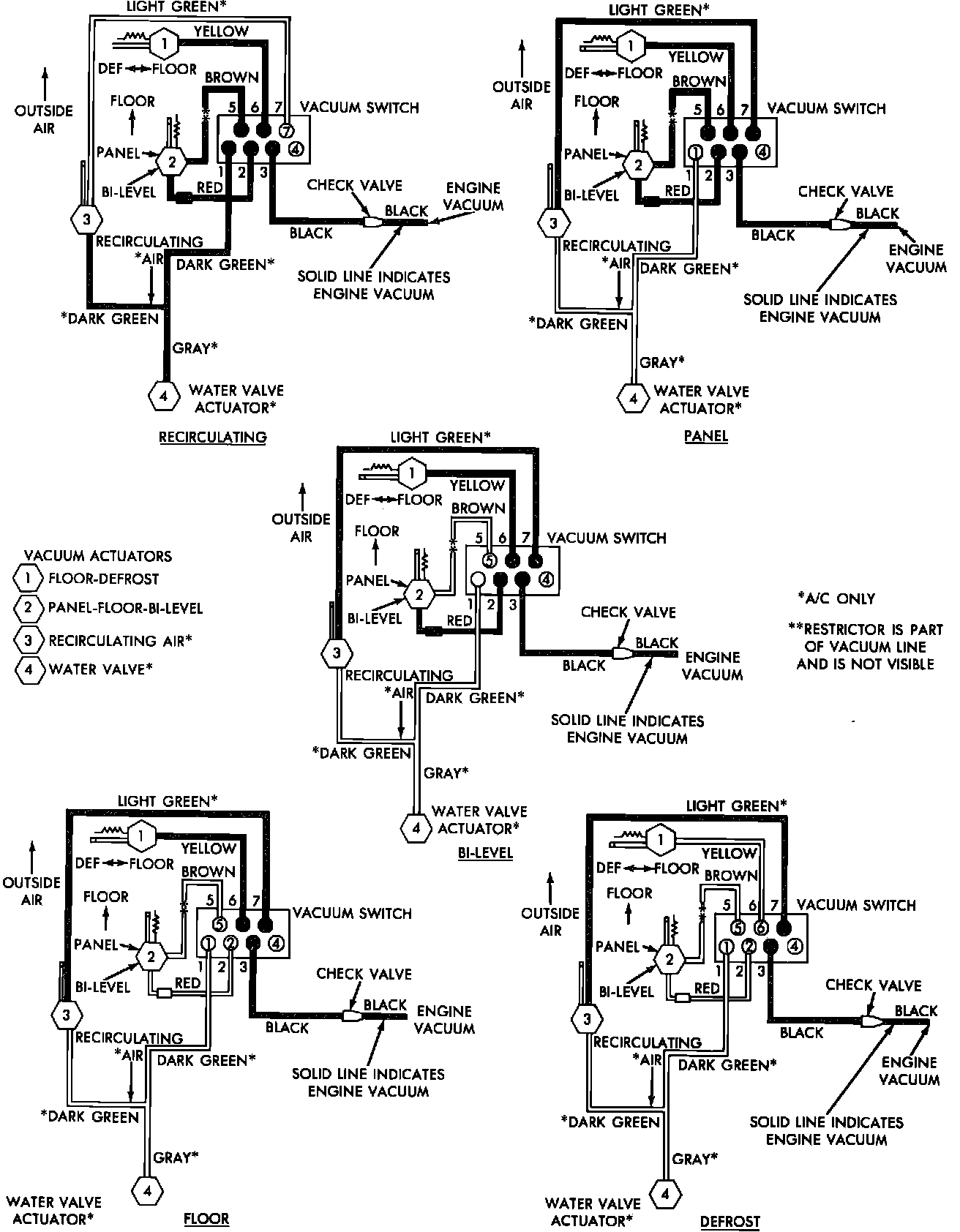 Air Conditioning & Heater Vacuum Hose Routing. Front Wheel Drive Models (Except: Acclaim, Horizon, Omni & Spirit):