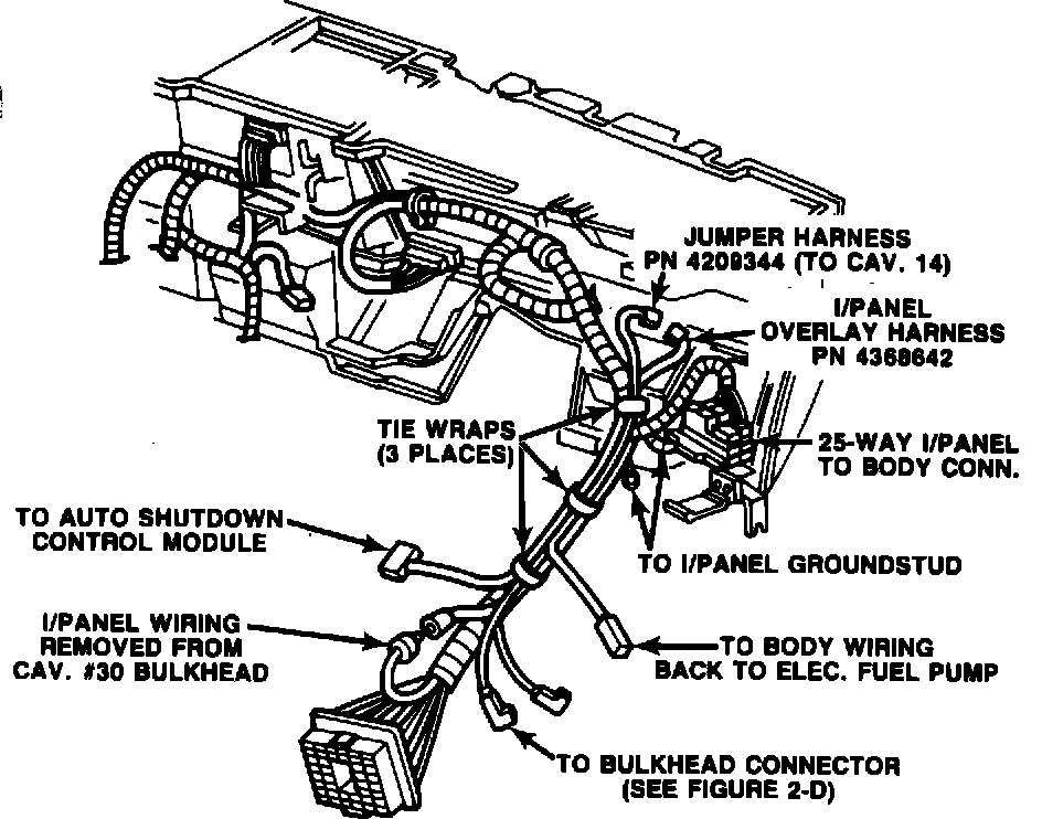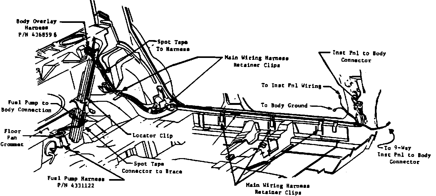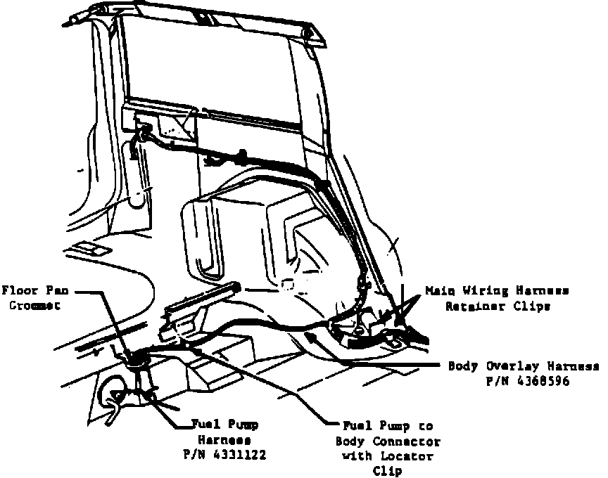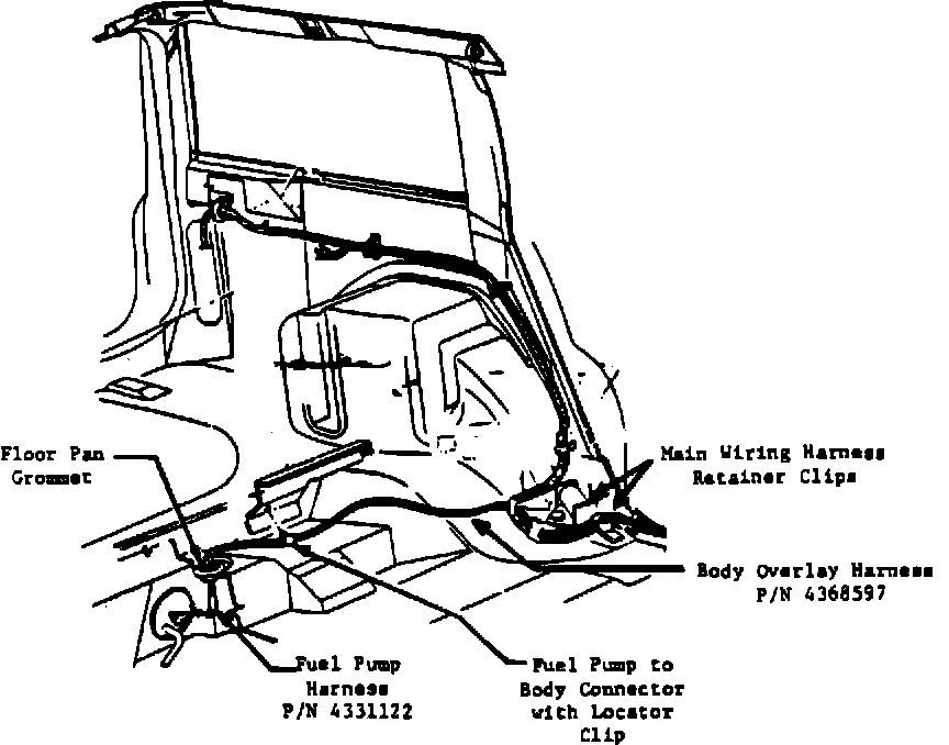 FIGURE 3-A - FUEL PUMP OVERLAY HARNESS ROUTING THROUGH BODY: